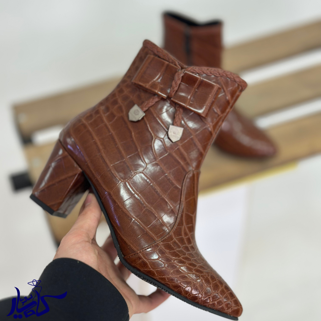 نیم بوت پاشنه دار کروکودیل قهوهای